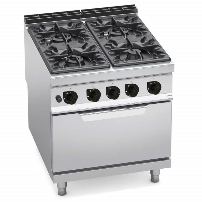 Bếp gas 4 bếp kèm lò gas 2/1 GN G9F4+FG là thiết bị bếp công nghiệp cao cấp, tích hợp nấu và nướng trong cùng một hệ thống. Với tổng công suất 42,3 kW cùng lò nướng gas mạnh mẽ 7,8 kW, sản phẩm giúp tối ưu không gian, nâng cao hiệu suất và đáp ứng nhu cầu chế biến liên tục cho nhà hàng, khách sạn chuyên nghiệp.