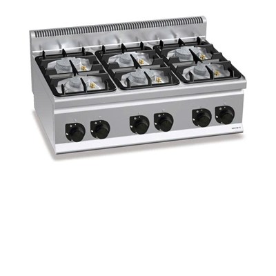 Bếp gas 6 bếp G6F6BPW là thiết bị bếp công nghiệp chuyên dụng dành cho nhà hàng, khách sạn và bếp ăn quy mô lớn. Với tổng công suất lên đến 28,5 kW cùng thiết kế 6 họng bếp độc lập, sản phẩm giúp tăng tốc độ chế biến, phục vụ hiệu quả trong giờ cao điểm.