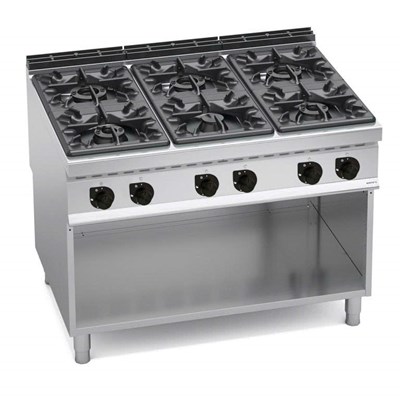 Bếp gas 6 bếp gắn trên tủ G9F6M là thiết bị bếp công nghiệp cao cấp, thiết kế dạng đứng tích hợp khu nấu và tủ chứa tiện lợi. Với tổng công suất lên đến 53,5 kW, sản phẩm đáp ứng hoàn hảo nhu cầu nấu nướng liên tục, giúp tối ưu hiệu suất và không gian cho các bếp nhà hàng, khách sạn quy mô lớn.