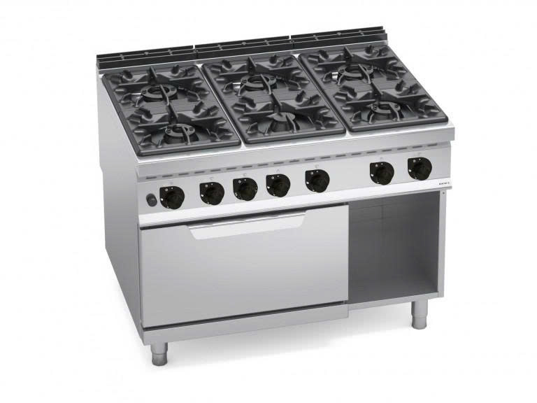 Bếp gas 6 bếp kèm lò gas 2/1 GN G9F6+FG là thiết bị bếp công nghiệp cao cấp, tích hợp nấu và nướng trong cùng một hệ thống. Với tổng công suất lên đến 61,3 kW cùng lò nướng gas 7,8 kW, sản phẩm mang lại hiệu suất vượt trội, đáp ứng nhu cầu chế biến liên tục trong các bếp nhà hàng, khách sạn quy mô lớn.