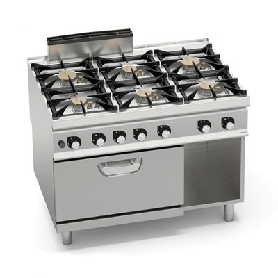 Bếp gas 6 bếp kèm lò nướng gas 2/1 GN SG9F6PS+FG là dòng thiết bị bếp công nghiệp cao cấp, tích hợp nấu và nướng trong cùng một hệ thống. Với tổng công suất lên đến 51,8 kW cùng lò nướng gas mạnh mẽ 7,8 kW, sản phẩm đáp ứng hoàn hảo nhu cầu chế biến quy mô lớn, vận hành liên tục và tối ưu hiệu suất trong gian bếp chuyên nghiệp.