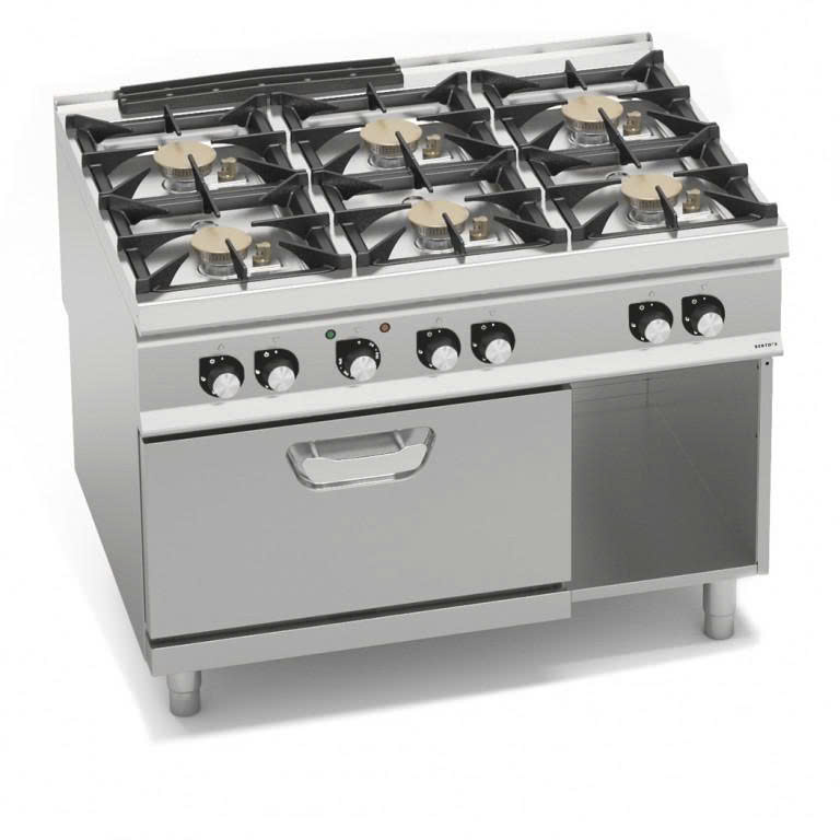 Bếp gas 6 bếp sử dụng lò nướng điện 1/1 GN SG9F6PSP+FE2 là dòng thiết bị bếp công nghiệp cao cấp, tích hợp hoàn hảo giữa bếp gas công suất lớn và lò nướng điện hiện đại. Với tổng công suất gas lên đến 60 kW cùng lò nướng điện 4,68 kW, sản phẩm đáp ứng tối đa nhu cầu chế biến liên tục, giúp tối ưu hiệu suất và không gian cho các bếp nhà hàng, khách sạn quy mô lớn.