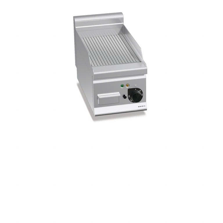 Bếp nướng điện có rãnh E6FR3BP là thiết bị bếp công nghiệp nhỏ gọn, sử dụng điện 3 pha cho khả năng gia nhiệt ổn định và chính xác. Thiết kế mặt nướng rãnh giúp tạo vân nướng đẹp mắt, đồng thời thoát mỡ hiệu quả, mang đến món ăn hấp dẫn và ít dầu mỡ hơn. Sản phẩm phù hợp cho quán ăn nhỏ, quầy đồ ăn nhanh và bếp cần môi trường sạch sẽ.