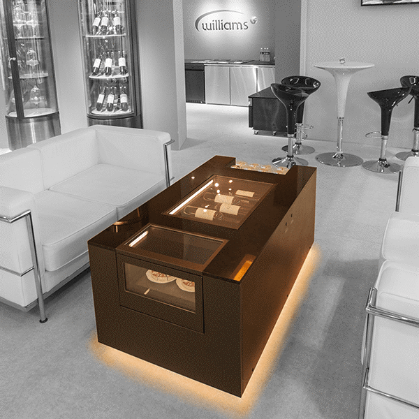Bàn cà phê lạnh Williams được thiết kế chuyên biệt để trưng bày và phục vụ rượu vang trong các quầy bar, lounge, nhà hàng và không gian sự kiện cao cấp. Với nhiệt độ hoạt động +5 / +8 °C, bàn vừa giữ rượu ở trạng thái hoàn hảo, vừa tạo điểm nhấn sang trọng cho không gian.