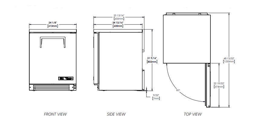 Thông số kỹ thuật Bàn đông 1 cánh cửa đặc TRUE TUC-24F-HC