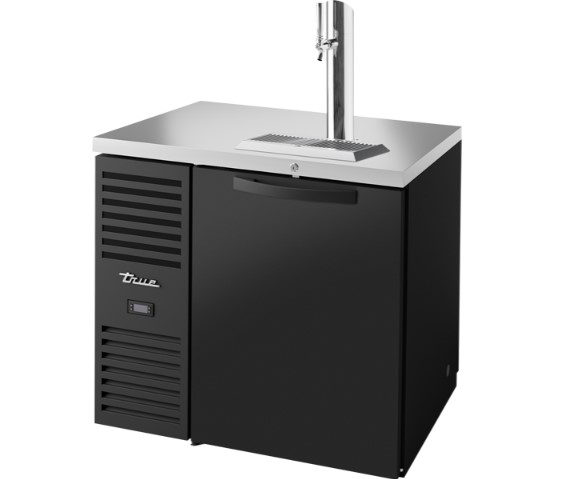 Thông số kỹ thuật Bàn lạnh một vùng Pass-Thru có hệ thống làm lạnh bên trái. Bên ngoài màu đen và cửa xoay chắc chắn TRUE TDR36-PTSZ1-L-B-S-S-1