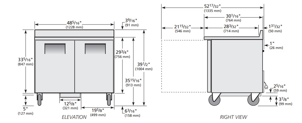 Thông số kỹ thuật Bàn mát 2 cánh cửa đặc TRUE TWT-48-HC