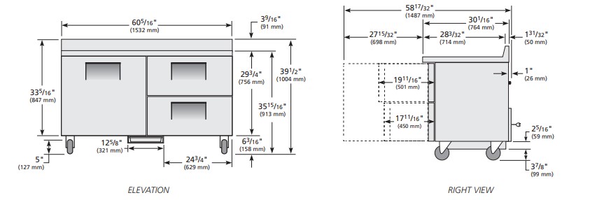 Thông số kỹ thuật Bàn mát có cửa và ngăn kéo TRUE TWT-60D-2-HC