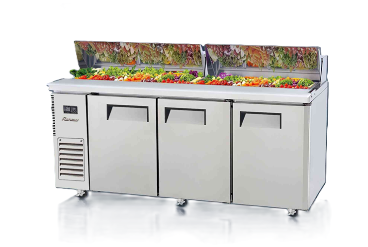 Tủ được tối ưu để bảo quản rau củ, salad, topping và nguyên liệu chế biến tươi mát số lượng lớn, đồng thời tích hợp mặt bàn inox thao tác tiện lợi, tạo thành một trạm làm việc hoàn chỉnh trong hệ thống bếp công nghiệp.