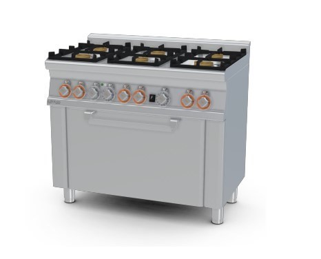 Bếp âu 6 đầu đốt dùng gas và lò nướng điện (cửa thép không gỉ) Lotus CFM6-610GEM
