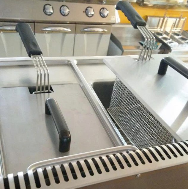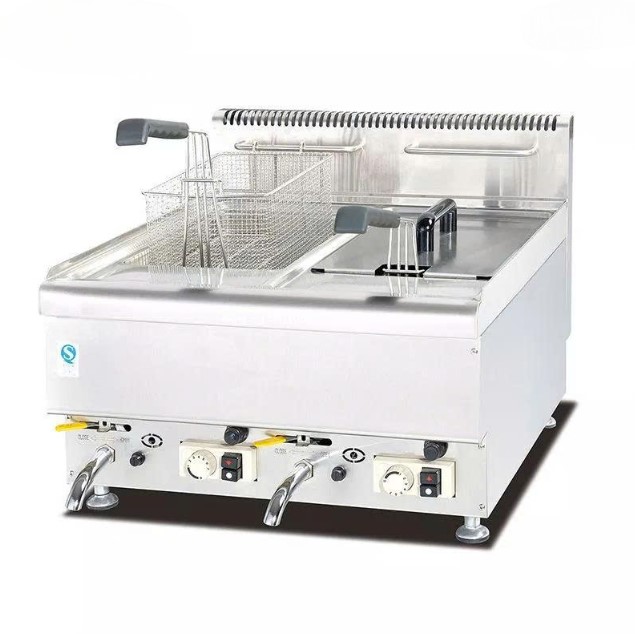 Một chiếc bếp chiên nhúng dùng gas 2 ngăn – dung tích 14L, mạnh mẽ, an toàn, linh hoạt, được thiết kế chuyên biệt cho nhà hàng, quán ăn nhanh, bếp công nghiệp và mô hình kinh doanh F&B hiện đại.