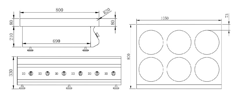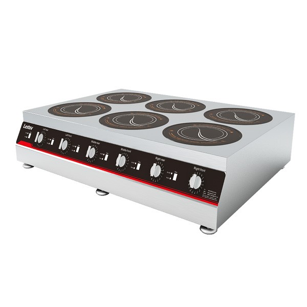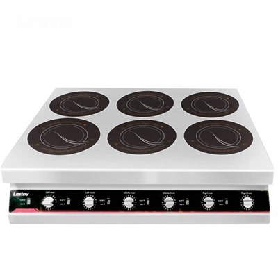 Bếp từ thương mại 6 đầu đốt để bàn này giúp các nhà hàng nhỏ gọn nấu thức ăn 6 * 3,5kg trong 15 phút, có thể đáp ứng khối lượng bữa ăn cho 90 người. Nó sử dụng công nghệ sưởi ấm cảm ứng, giúp tiết kiệm 35% tiền điện so với sưởi ấm bằng gas. Thích hợp cho các nhà hàng, khách sạn lớn, v.v.