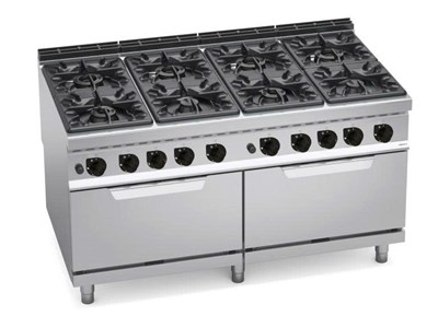 Bếp ga 8 bếp kết hợp với 2 lò nướng gas 2/1 GN G9F8+2FG là thiết bị bếp công nghiệp cao cấp, tích hợp 8 họng bếp nấu mạnh mẽ và 2 lò nướng gas công suất lớn. Với tổng công suất lên đến 84,6 kW, sản phẩm mang lại hiệu suất vượt trội, đáp ứng nhu cầu chế biến khối lượng lớn trong các nhà hàng, khách sạn và bếp công nghiệp quy mô lớn.
