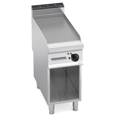 Bếp nướng điện E9FR4M là thiết bị bếp công nghiệp cao cấp với mặt nướng có rãnh bằng thép không gỉ, giúp tạo vân nướng đẹp mắt và thoát mỡ hiệu quả. Thiết kế gắn trên tủ tiện lợi giúp tối ưu không gian bếp, phù hợp cho nhà hàng, quán ăn và bếp công nghiệp chuyên nghiệp.