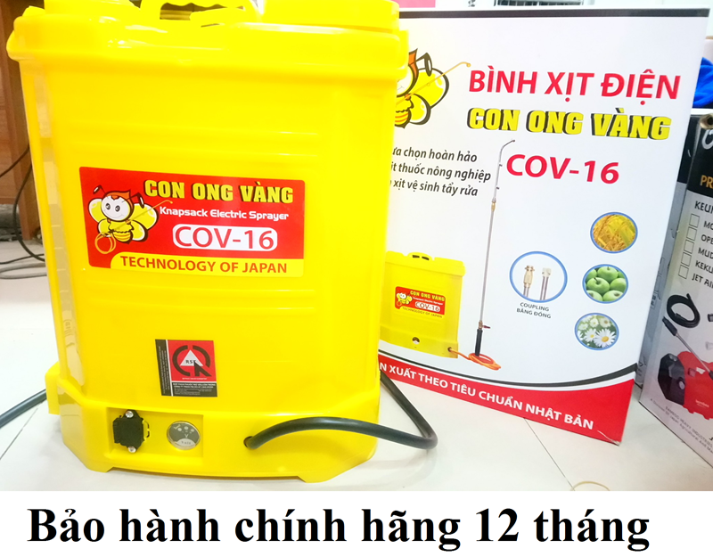 Bình xịt điện COV 16L - Bình xịt điện COV 16L là thiết bị máy phun thuốc thương hiệu Con Ong Vàng - thương hiệu nổi tiếng, được nhiều người biết đến. bình có trọng lượng nhẹ dễ dàng di chuyển khi sử dụng. - Bình được sản suất theo công nghệ Nhật Bản. ...