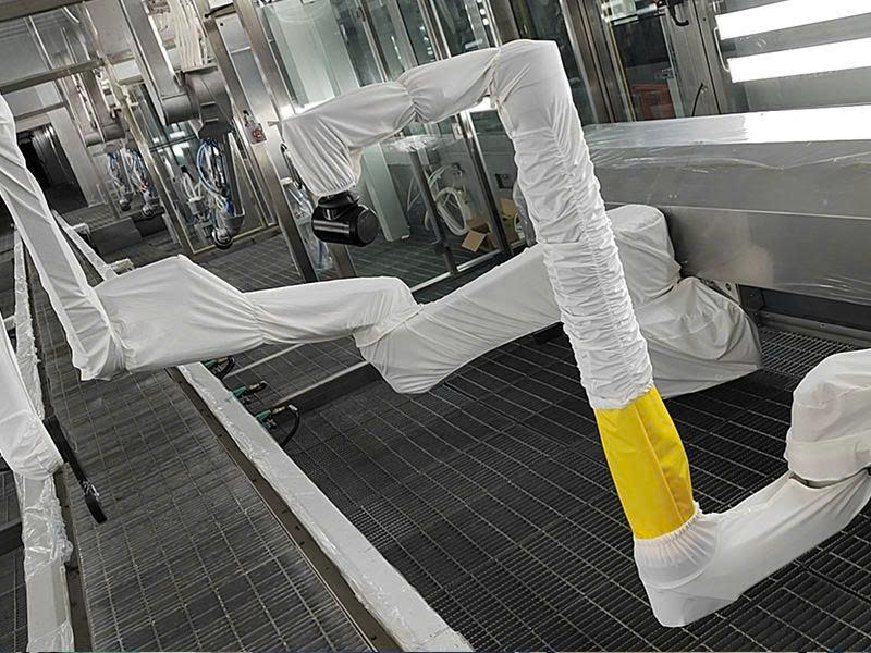 Bộ đồ bảo hộ giúp ngăn chặn sơn bám vào robot, giữ cho robot luôn sạch và hoạt động ổn định.