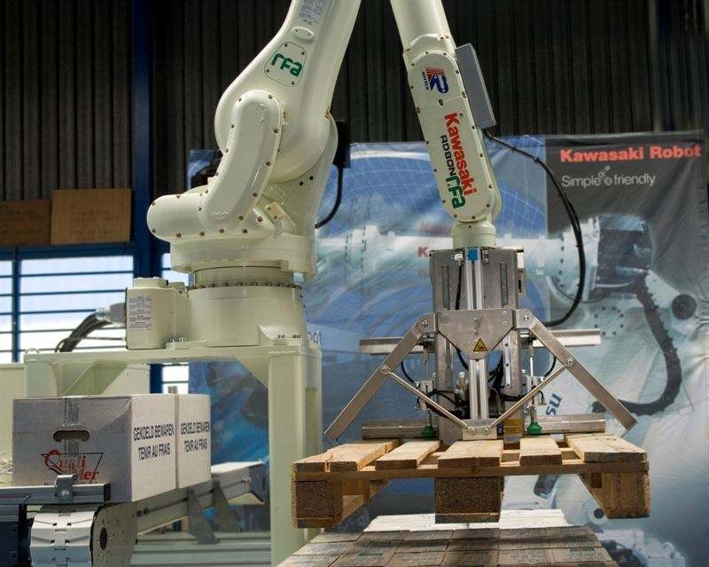 🤖 Kawasaki RS020N được thiết kế cho các ứng dụng xếp dỡ và palletizing tự động trong dây chuyền sản xuất.
