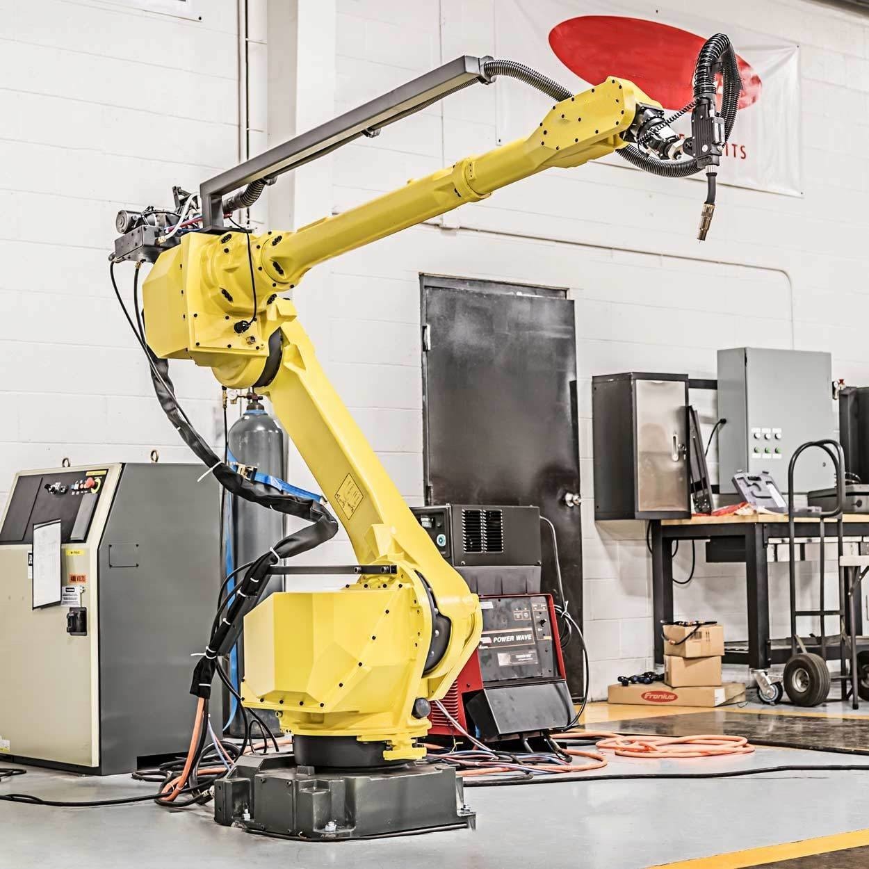 ⚡ Hàn hồ quang: Robot thực hiện các thao tác hàn chính xác trong sản xuất cơ khí và chế tạo.