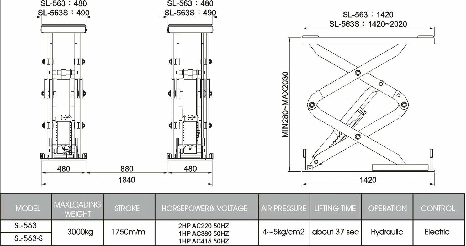 📊 THÔNG SỐ KỸ THUẬT CẦU NÂNG SL-563S