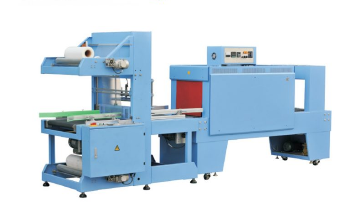 Máy bao gồm hai bộ phận chính là máy đóng gói cắt màng tự động và buồng co màng.