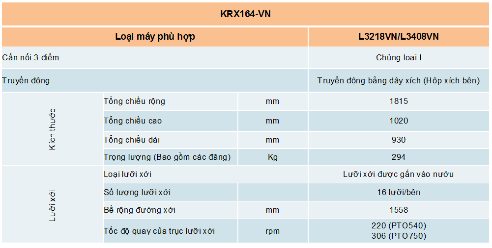 Thông tin sản phẩm Dàn xới có chiều rộng 98 cm, lý tưởng để làm cỏ giữa những hàng mía có khoảng cách 130 – 150 cm. Lưỡi xới được nhập khẩu từ Tây Ban Nha, có độ bền cao được thiết kế có thể xới tơi đất. Giàn xới được trang bị thêm 3 thanh chắn cỏ, ...
