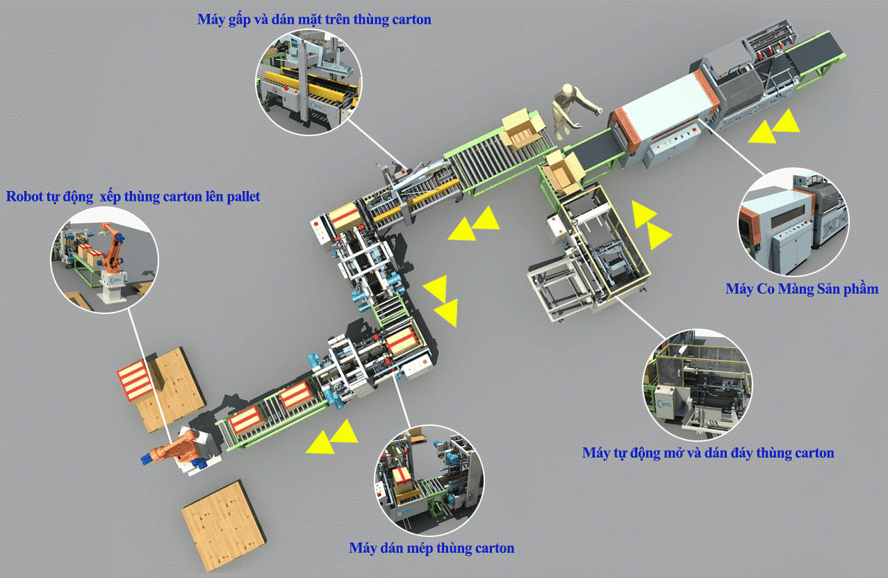 Dây chuyền đóng gói và dán thùng tự động là giải pháp tối ưu giúp doanh nghiệp nâng cao năng suất, chuẩn hóa quy trình và giảm chi phí vận hành trong sản xuất hiện đại.