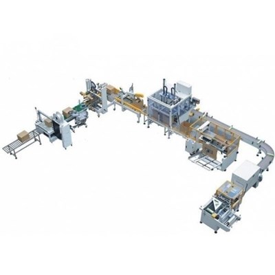 Dây chuyền gắp sản phẩm, dán và đóng đai thùng tự động là hệ thống tích hợp nhiều công đoạn trong một quy trình liên hoàn, bao gồm: gắp sản phẩm tự động, dán thùng carton và đóng đai thùng hoàn chỉnh.