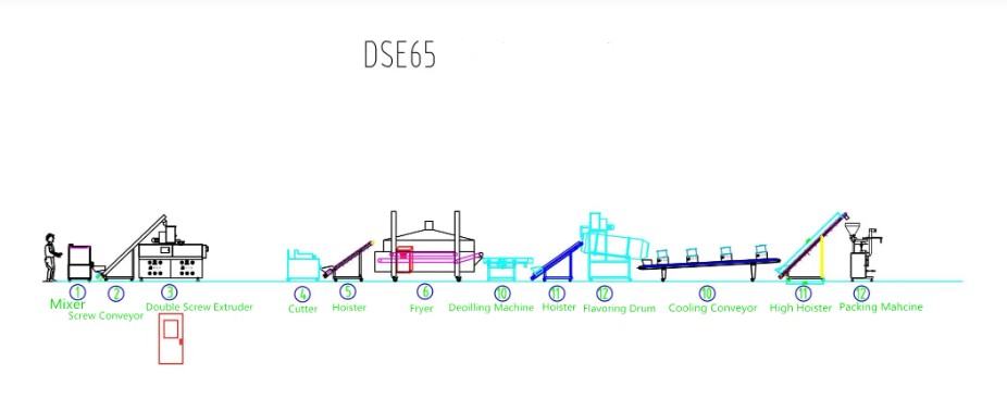 Dây chuyền sản xuất snack chiên tự động biến các nguyên liệu dạng bột như: