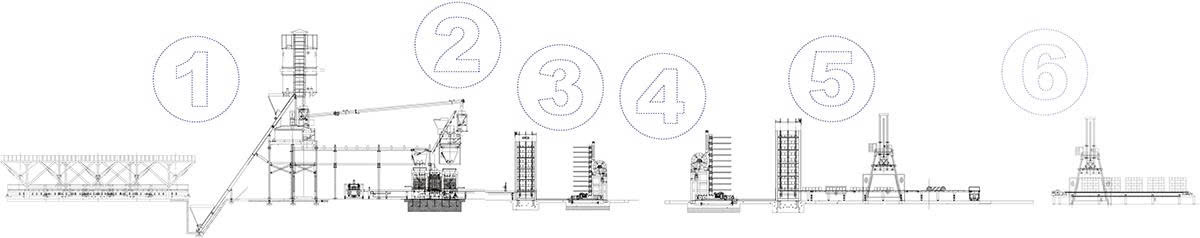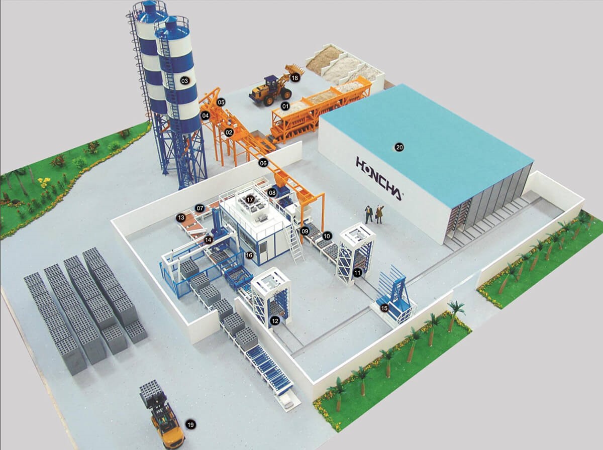 Với hệ thống này, từ cân nguyên liệu, trộn bê tông, tạo khối, nâng pallet, lưu hóa, đến xếp khối hoàn toàn tự động, toàn bộ quá trình được tích hợp thông minh, đảm bảo năng suất tối đa và chất lượng sản phẩm đồng đều, giúp bạn nắm bắt cơ hội thị trường xây dựng hiện đại.
