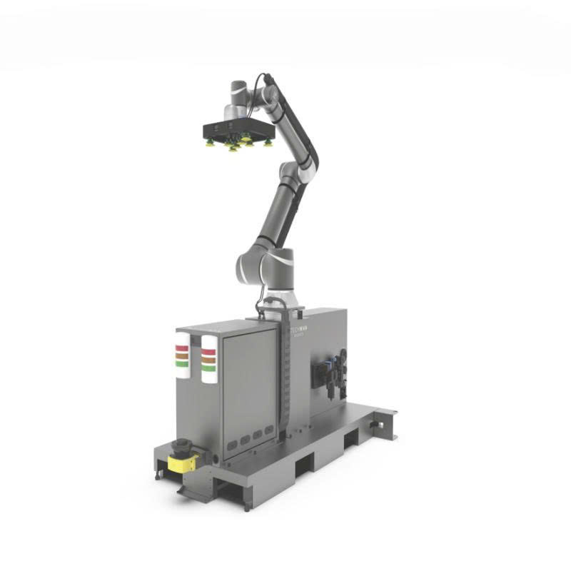 Robot xếp pallet Techman là hệ thống cobot 6 trục tích hợp AI và thị giác máy, được thiết kế để tự động hóa các tác vụ: