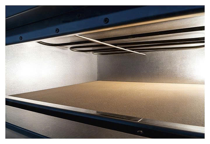 - Hai buồng nướng độc lập, mỗi buồng nướng 1 chiếc pizza Ø35 cm.
