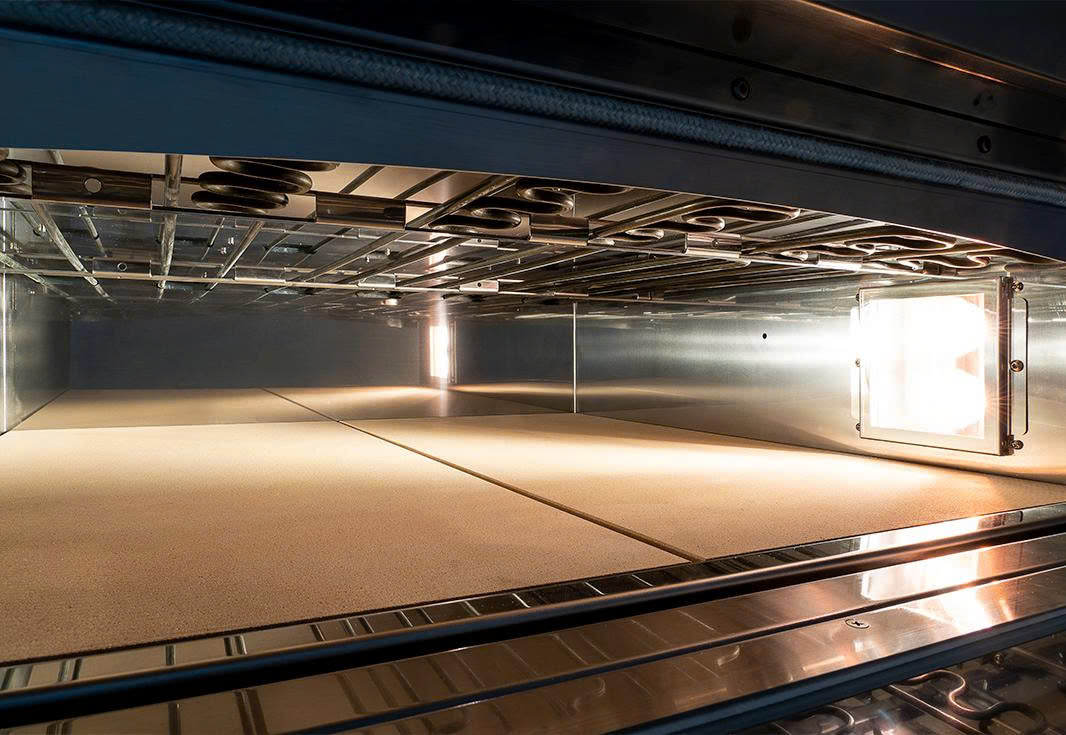 - 🍕 Mỗi buồng chứa 9 chiếc pizza Ø35 cm, tổng công suất 18 chiếc cùng lúc.