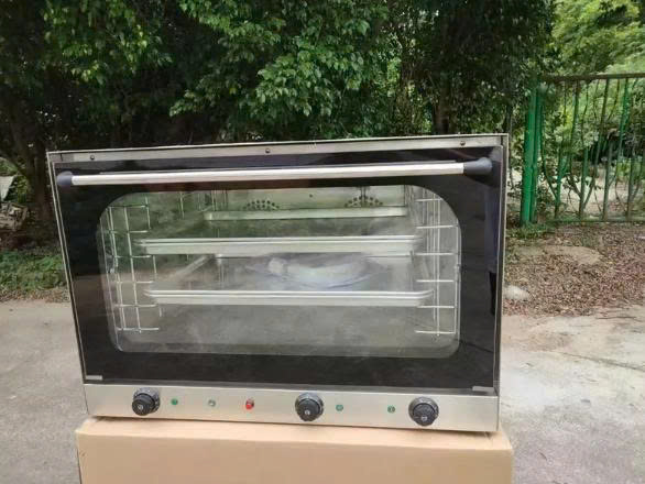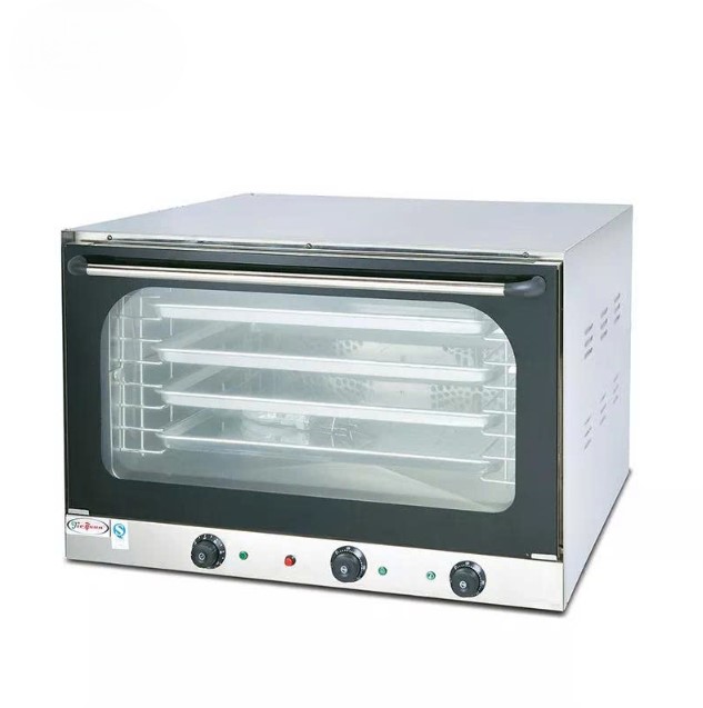 Lò nướng đối lưu sử dụng quạt công suất cao để luân chuyển khí nóng liên tục quanh thực phẩm.