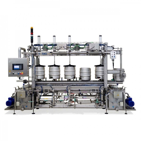 Dây chuyền chiết rót bia keg, bom bia, thùng bia, téc tự động được trang bị thiết bị khử trùng tự động. Chúng tôi có thể được trang bị hệ thống truyền tải đầu vào và đầu ra và lưu trữ chất lỏng rửa theo yêu cầu.