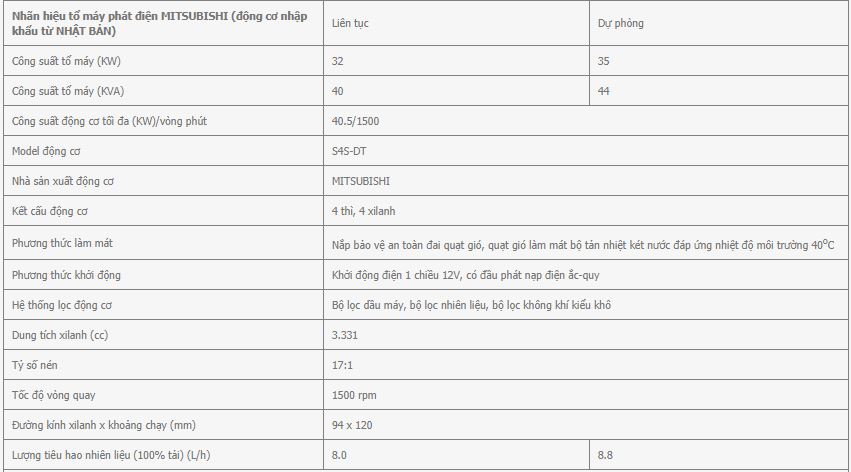 • MÁY PHÁT ĐIỆN CN ĐỘNG CƠ MITSUBISHI 40KVA