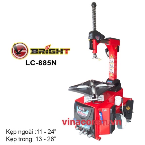 Máy ra vào lốp xe con Bright LC-885N nhãn hiệu Bright được thiết kế với kiểu máy bán tự động, phù hợp với larăng có kích thước đường kính 10"-21". Sản phẩm làm việc tốt với larăng đúc có đường kính lên đến 21".