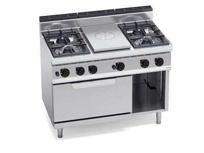 Bếp gas mặt liền khối + 4 bếp mở kèm lò nướng gas 2/1 G7T4P4F+FG là thiết bị bếp công nghiệp cao cấp, tích hợp 3 chức năng trong một: nấu nhanh, nấu giữ nhiệt và nướng công suất lớn. Với tổng công suất lên đến 35,8 kW cùng lò nướng gas 7,8 kW, sản phẩm đáp ứng hoàn hảo nhu cầu chế biến cường độ cao tại nhà hàng, khách sạn và bếp công nghiệp lớn.