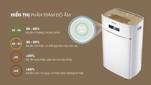 🔹 Tự động duy trì độ ẩm 55–65% – mức tốt nhất cho sức khỏe