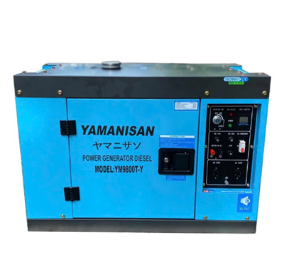 Máy phát điện chạy dầu Yamanisan YM9800T/Y công suất 7kW, động cơ diesel mạnh mẽ, cách âm tốt, tích hợp AVR ổn định điện áp, phù hợp cho gia đình, cửa hàng và xưởng nhỏ.