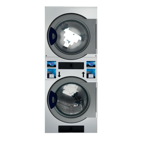 - Thiết kế thông minh kiểu chồng tầng, tầng trên là máy giặt, tầng dưới là máy sấy, tiết kiệm diện tích nơi đặt thiết bị, phù hợp với nhiều khu vực, kể cả nơi nhỏ và chật chội.