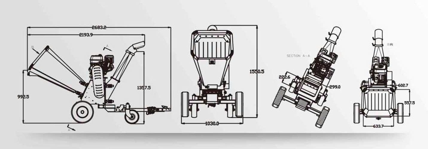 Dưới đây là thông số kỹ thuật chi tiết của mẫu máy băm gỗ công suất lớn này: