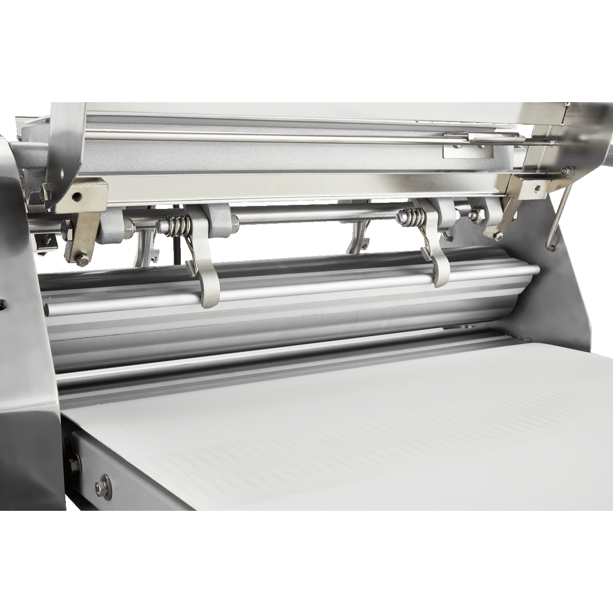 - Chiều rộng làm việc: Máy có băng tải rộng 600 mm, giúp tăng cường khả năng xử lý bột với diện tích làm việc lớn hơn.