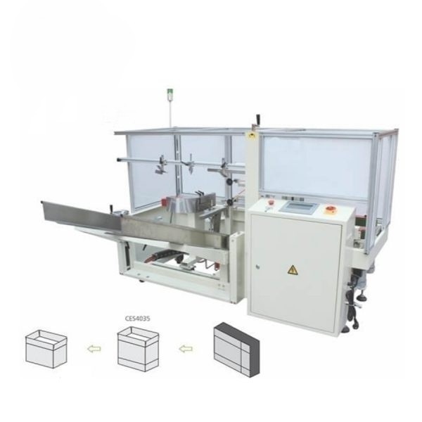 Máy cấp và dán đáy thùng carton MK-CES4035N là thiết bị chuyên dùng cho các nhà máy sử dụng thùng carton với số lượng lớn và liên tục trong ngày. Máy giúp tự động hóa hoàn toàn quá trình cấp thùng, tạo hình và dán đáy, từ đó giảm đáng kể nhu cầu nhân công ở công đoạn dựng thùng thủ công.