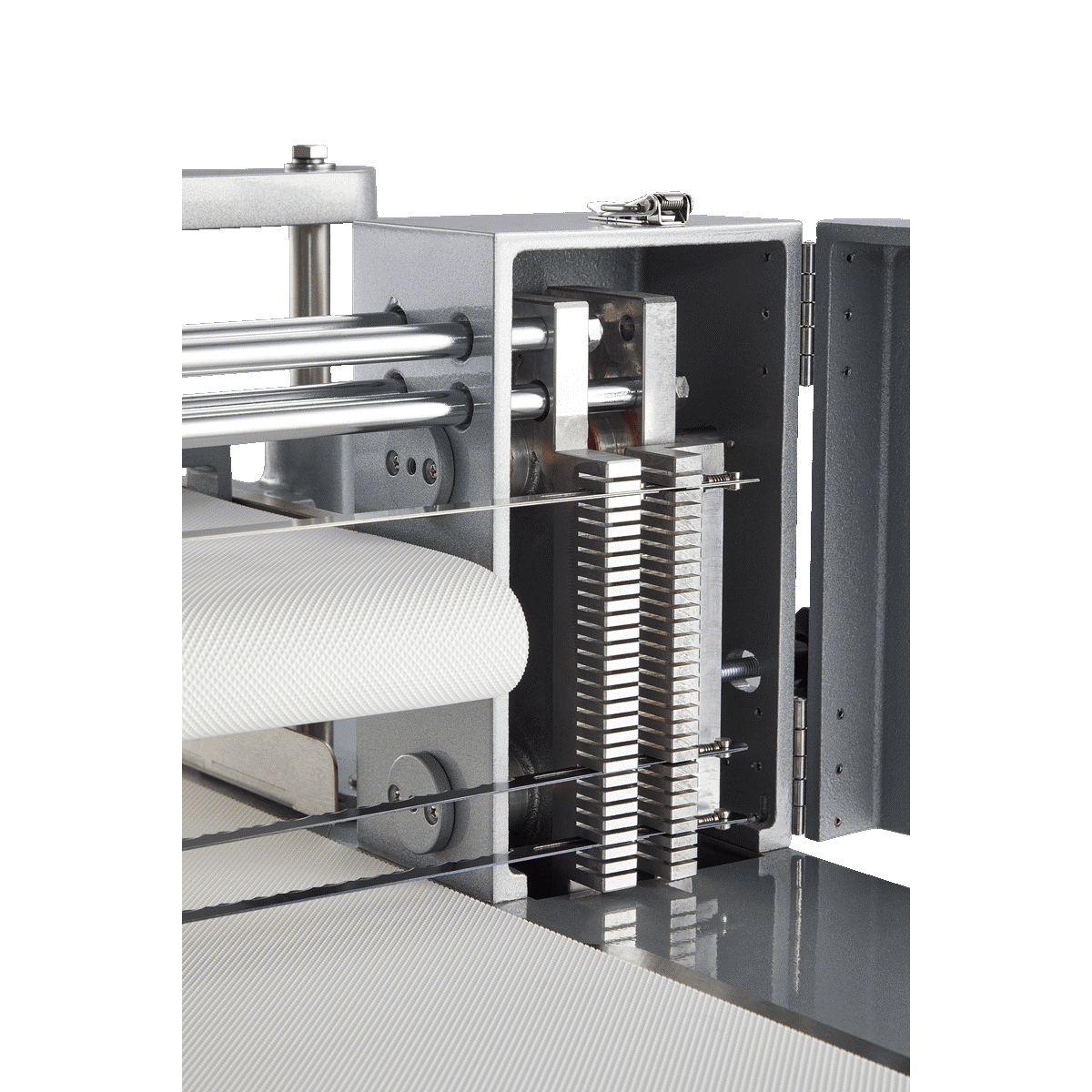 - ✔️ Khoảng cách giữa các lưỡi cắt có thể điều chỉnh dễ dàng theo từng bước 5 mm, giúp máy có thể cắt được các loại bánh với độ dày khác nhau, đáp ứng nhu cầu đa dạng của khách hàng.