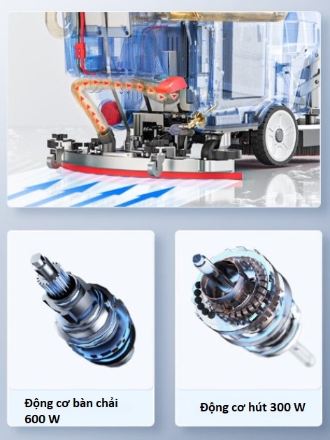 - 🌪 Động cơ bàn chải 600W & động cơ hút 300W: Chà sạch bụi bẩn, dầu mỡ, vết bẩn cứng đầu nhanh chóng.