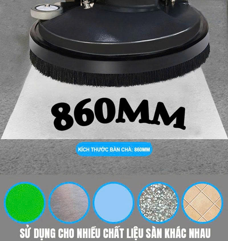 ✨ Máy phù hợp với mọi loại sàn cứng, từ bê tông, epoxy, gạch men đến đá granite, mang lại bề mặt sáng bóng và đều màu.