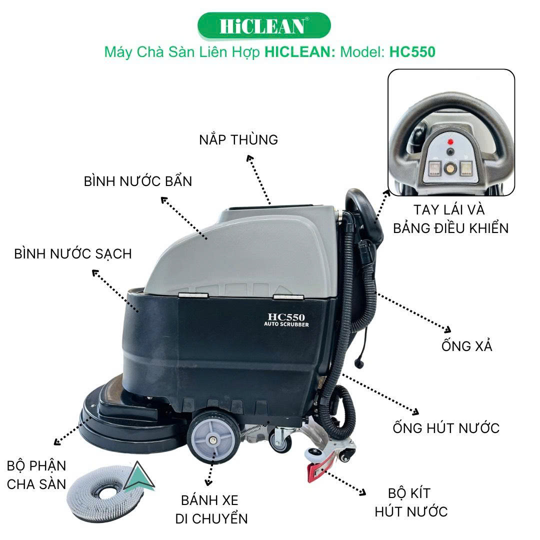 MÁY CHÀ SÀN LIÊN HỢP HICLEAN HC550 – GIẢI PHÁP VỆ SINH CHUYÊN NGHIỆP CHO NHÀ XƯỞNG VÀ KHÔNG GIAN RỘNG