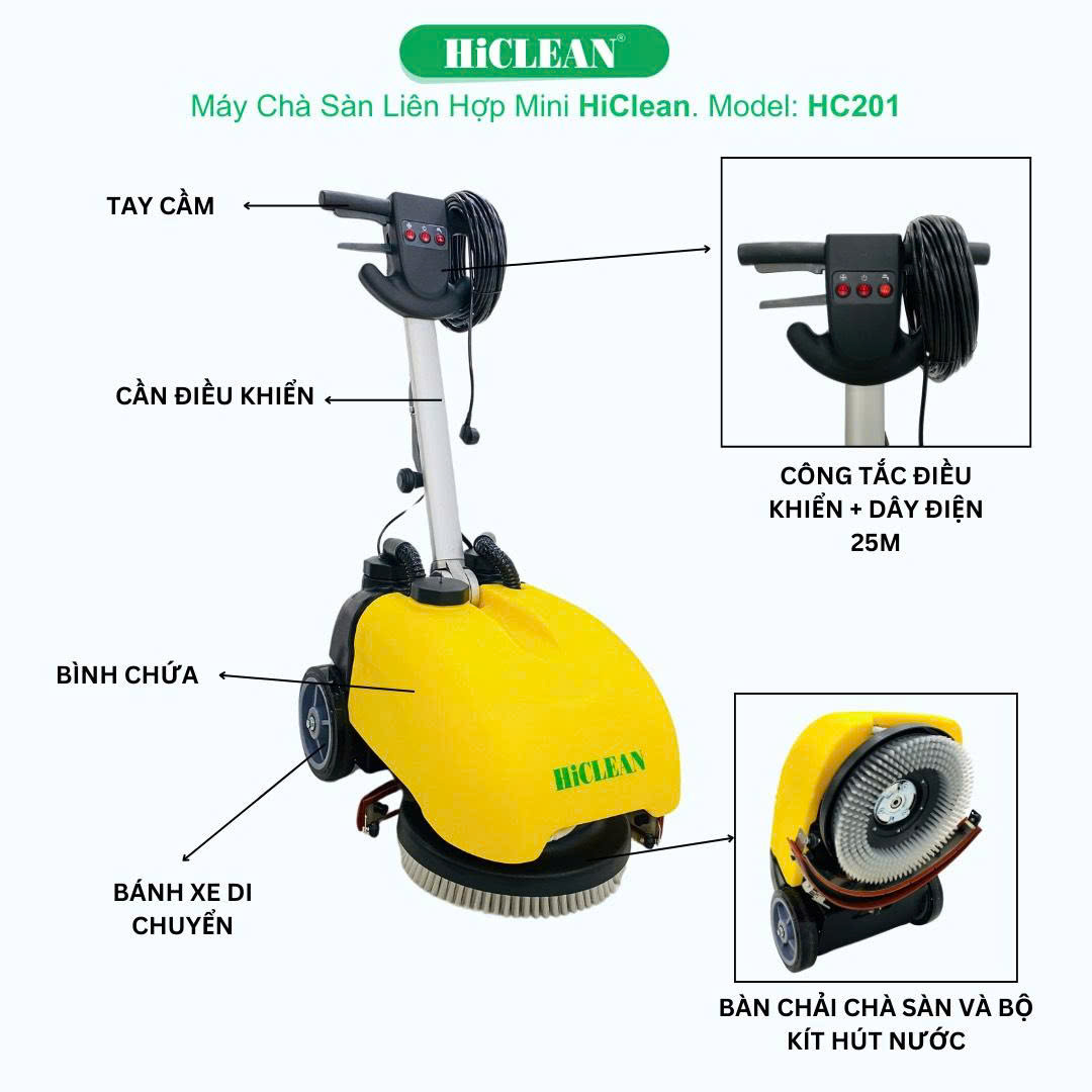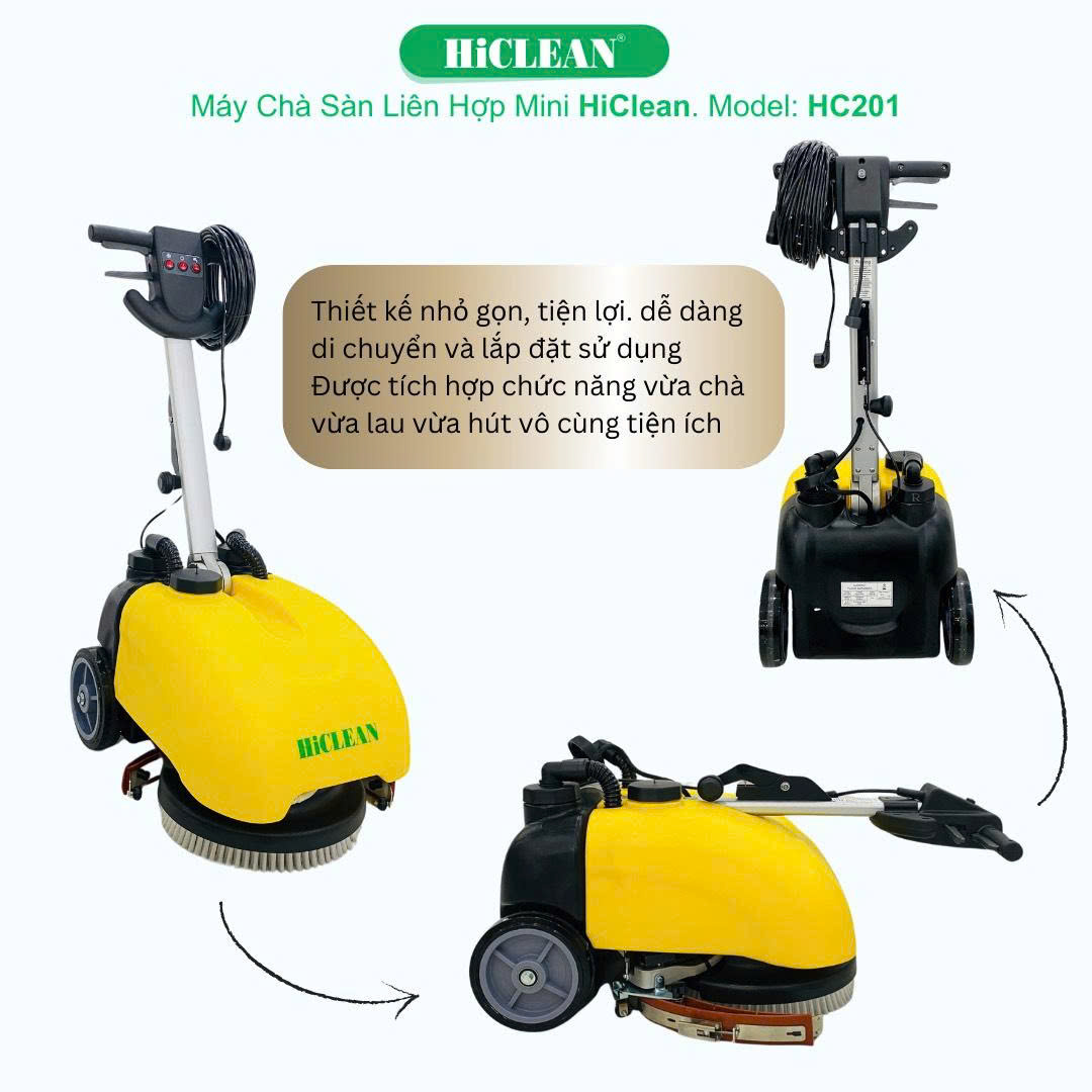 MÁY CHÀ SÀN LIÊN HỢP MINI HICLEAN HC 201 – GIẢI PHÁP LÀM SẠCH NHỎ GỌN, MẠNH MẼ CHO KHÔNG GIAN HIỆN ĐẠI