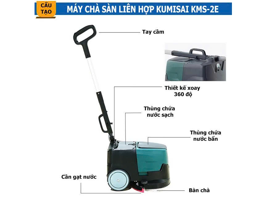 Máy chà sàn liên hợp mini Kumisai KMS-2E ra đời để giải quyết triệt để những nhu cầu này. Đây là thiết bị 3 trong 1, tích hợp chức năng chà sàn – hút nước – hút bụi, mang đến hiệu quả vệ sinh toàn diện, tiện dụng và tiết kiệm chi phí.