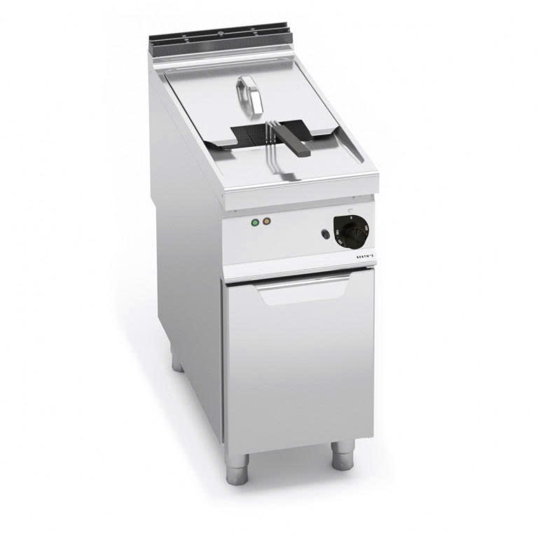 Máy chiên điện E9F22-4M phiên bản gắn trên tủ là thiết bị bếp công nghiệp cao cấp với dung tích lớn 22L, được thiết kế dành cho các mô hình kinh doanh F&B quy mô lớn như nhà hàng, quán ăn nhanh, bếp trung tâm. Thiết kế tích hợp tủ dưới giúp tối ưu không gian lưu trữ, nâng cao tính chuyên nghiệp cho khu bếp.